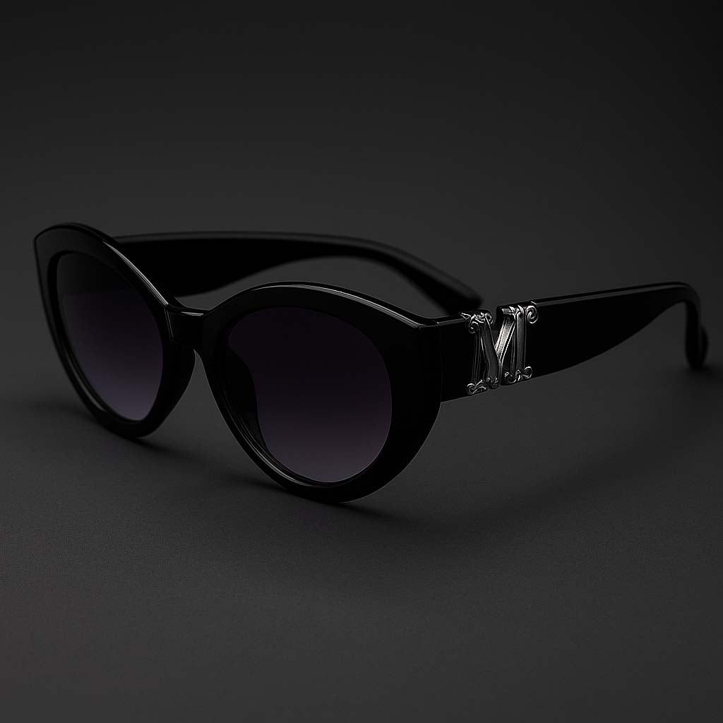 Inspired by classic Hollywood glamour, these sunglasses feature a distinctive cat-eye frame that adds a touch of sophistication to any look. The sleek black frame and dark lenses create a timeless and elegant aesthetic.