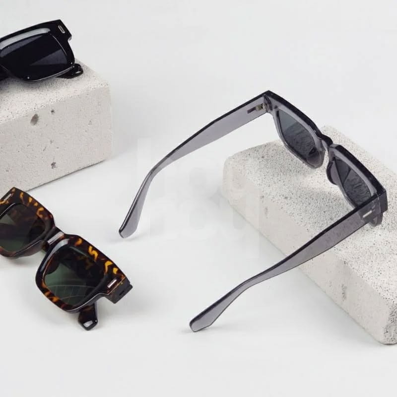 These stylish sunglasses feature a bold, rectangular frame and dark lenses. The minimalist design and sleek lines offer a modern and sophisticated look.